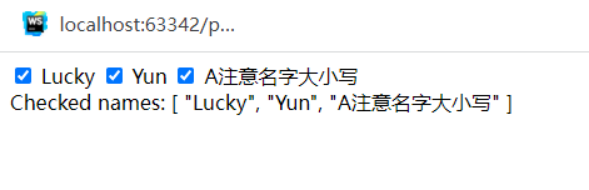 <input type="checkbox" id="a注意大小写" value="A注意大小写" v-model="checkedNames">