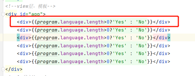 可见,我在View层的模板里写了一个表达式(三元表达式)