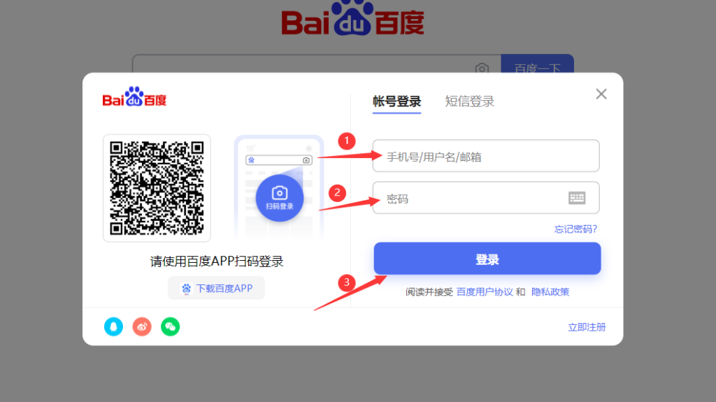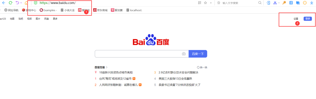 1、先输入网址https://www.baidu.com,然后点击右上角登录。