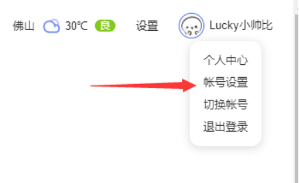 3、然后光标移动到头像,菜单栏展开后点击 账号设置